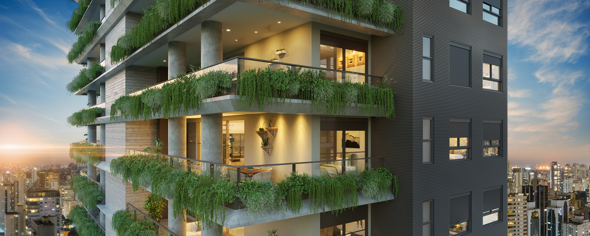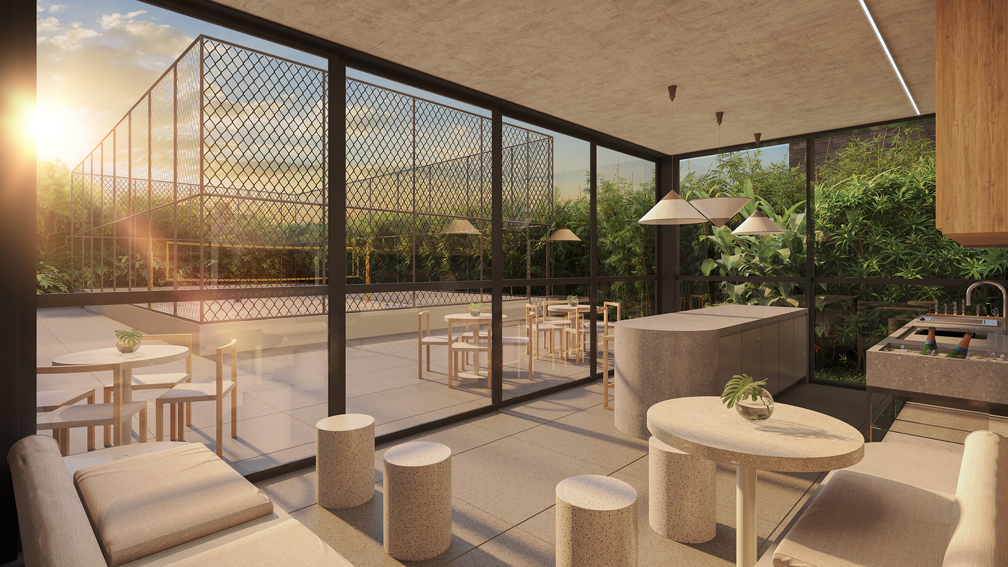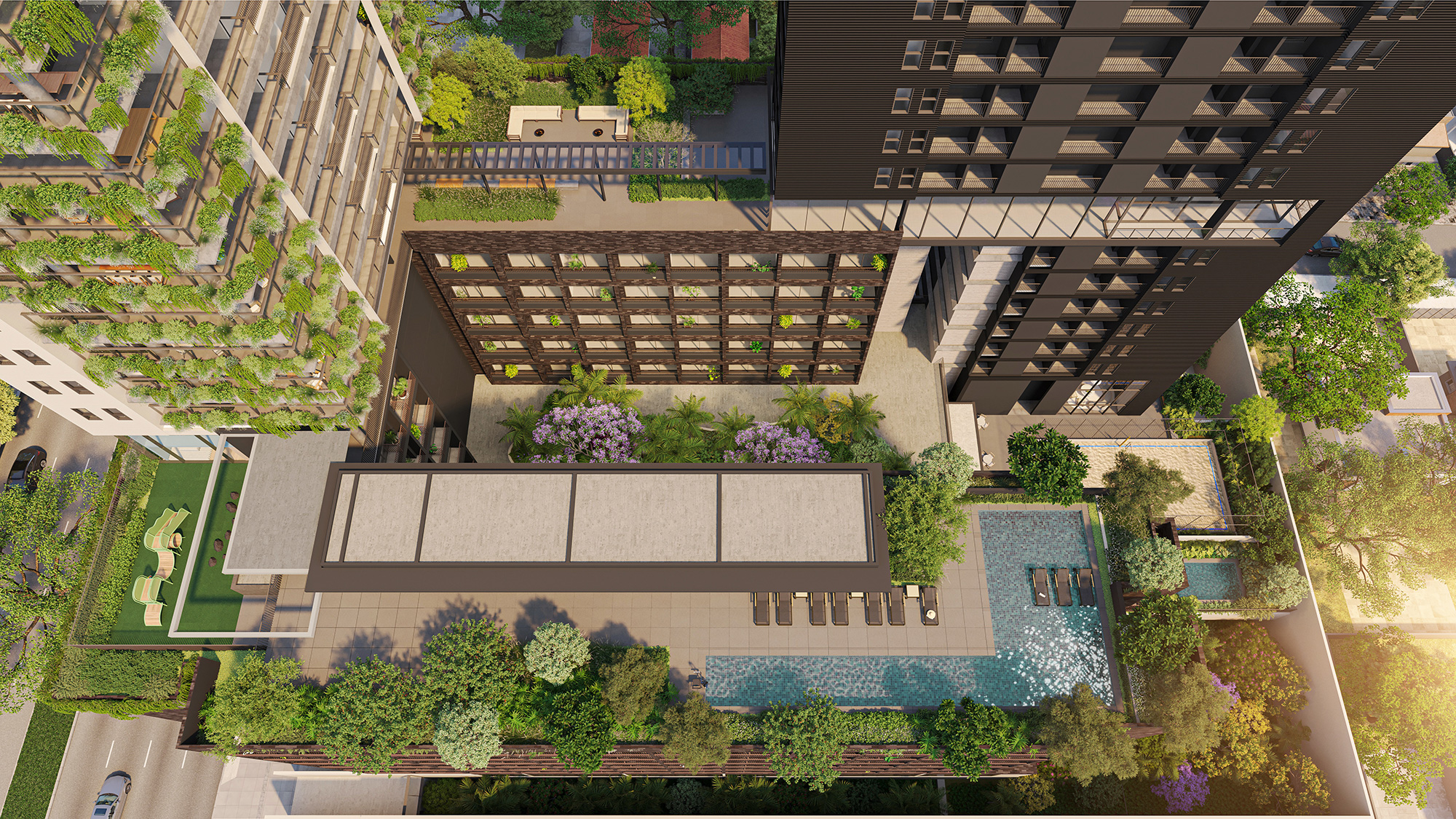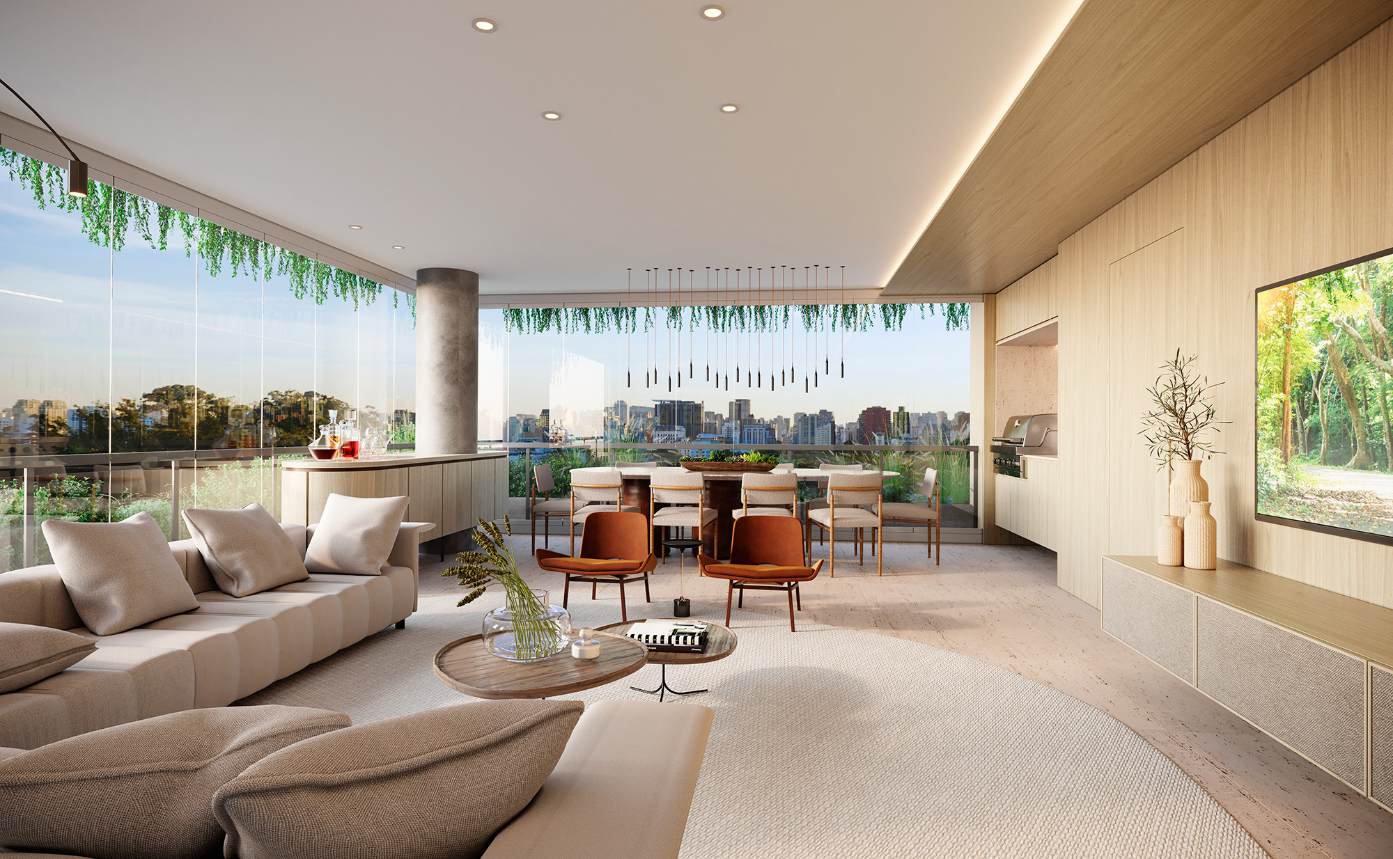 O verde rompe as fronteiras com a arquitetura e abraça cada detalhe do empreendimento.
