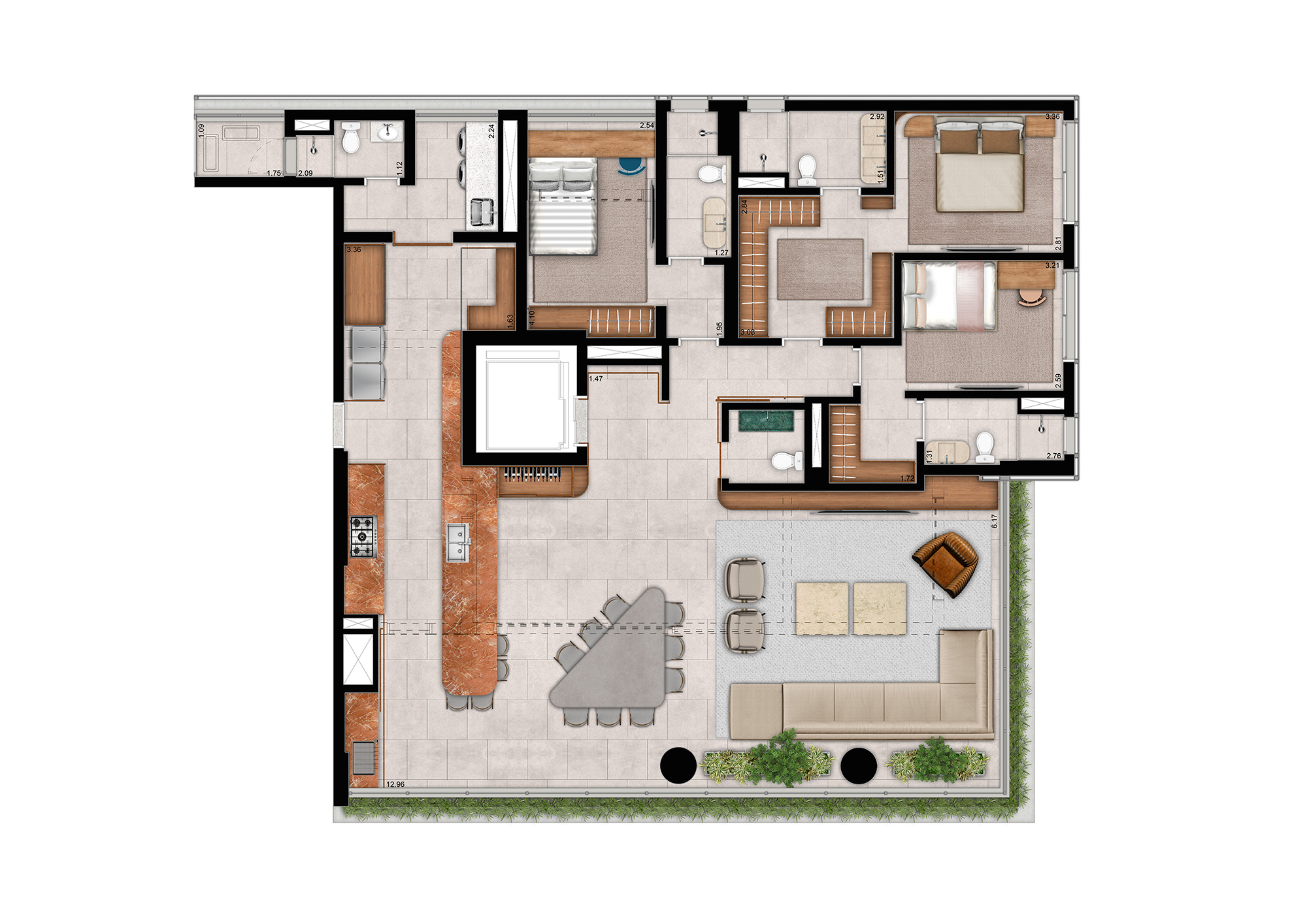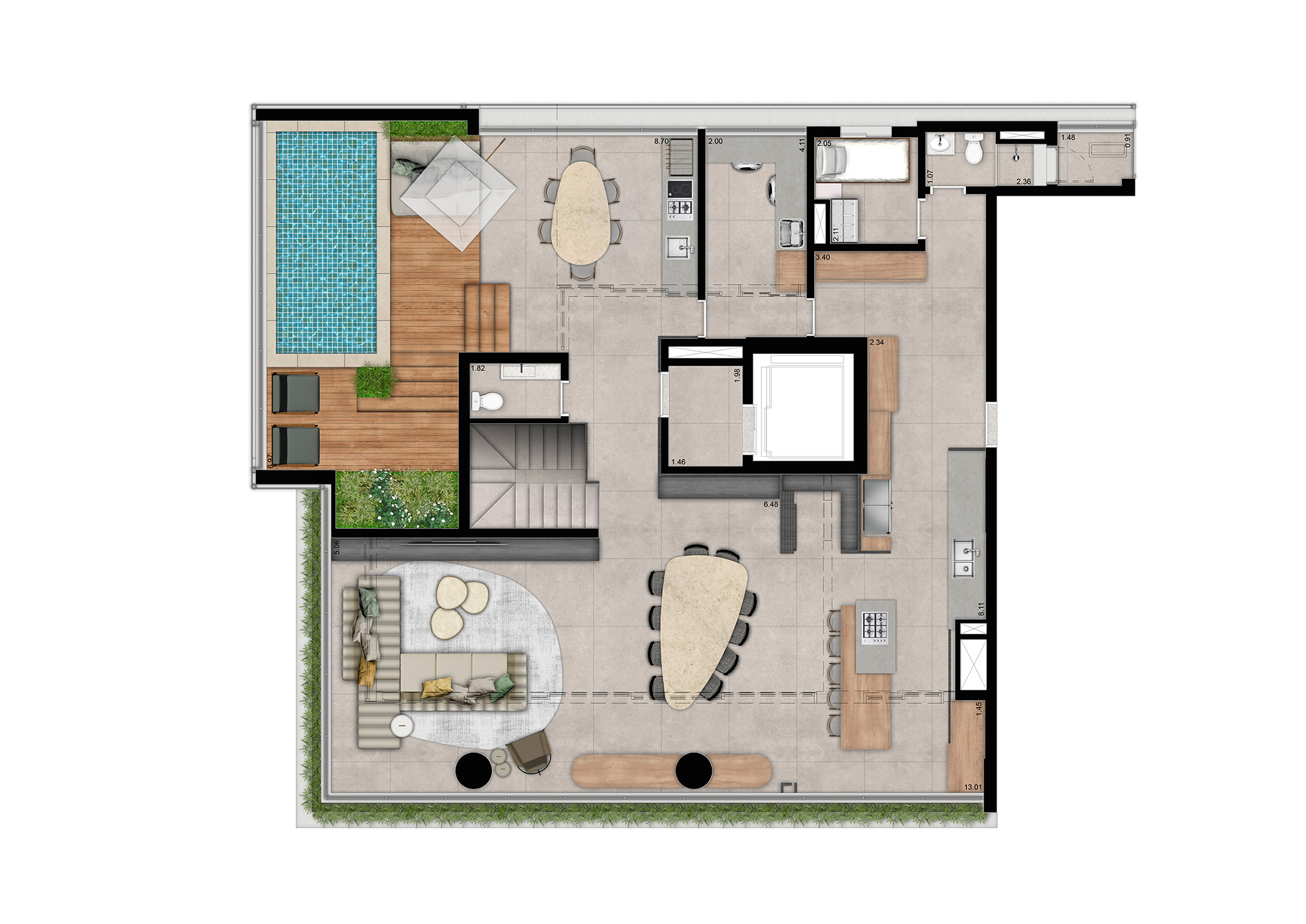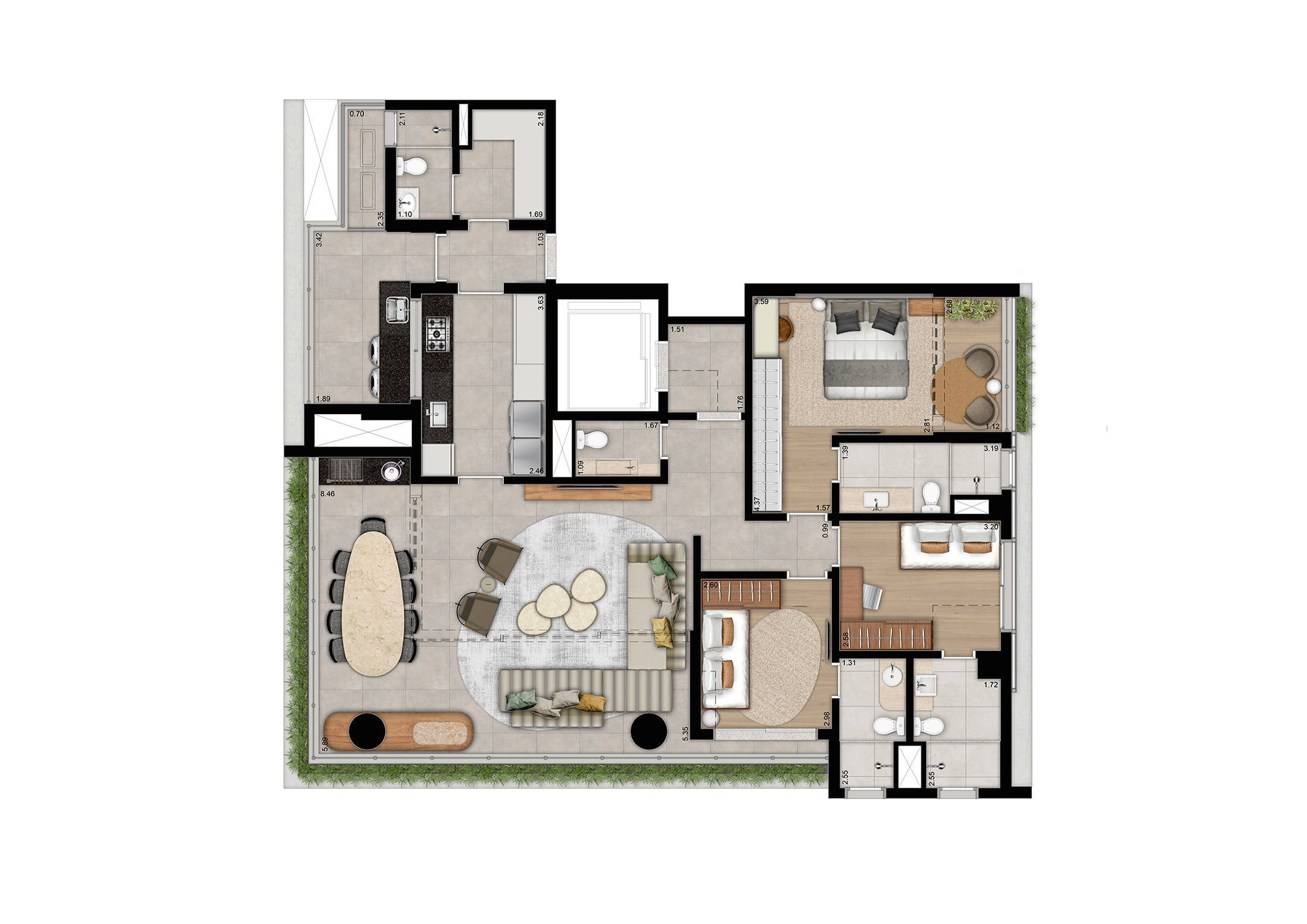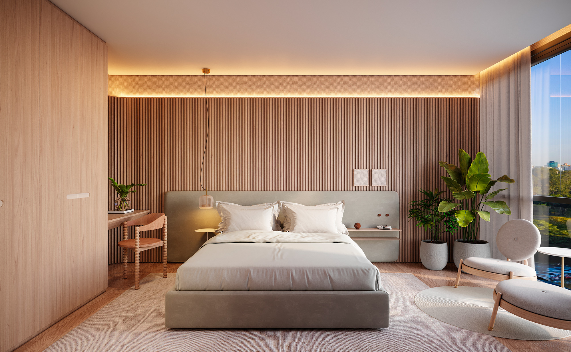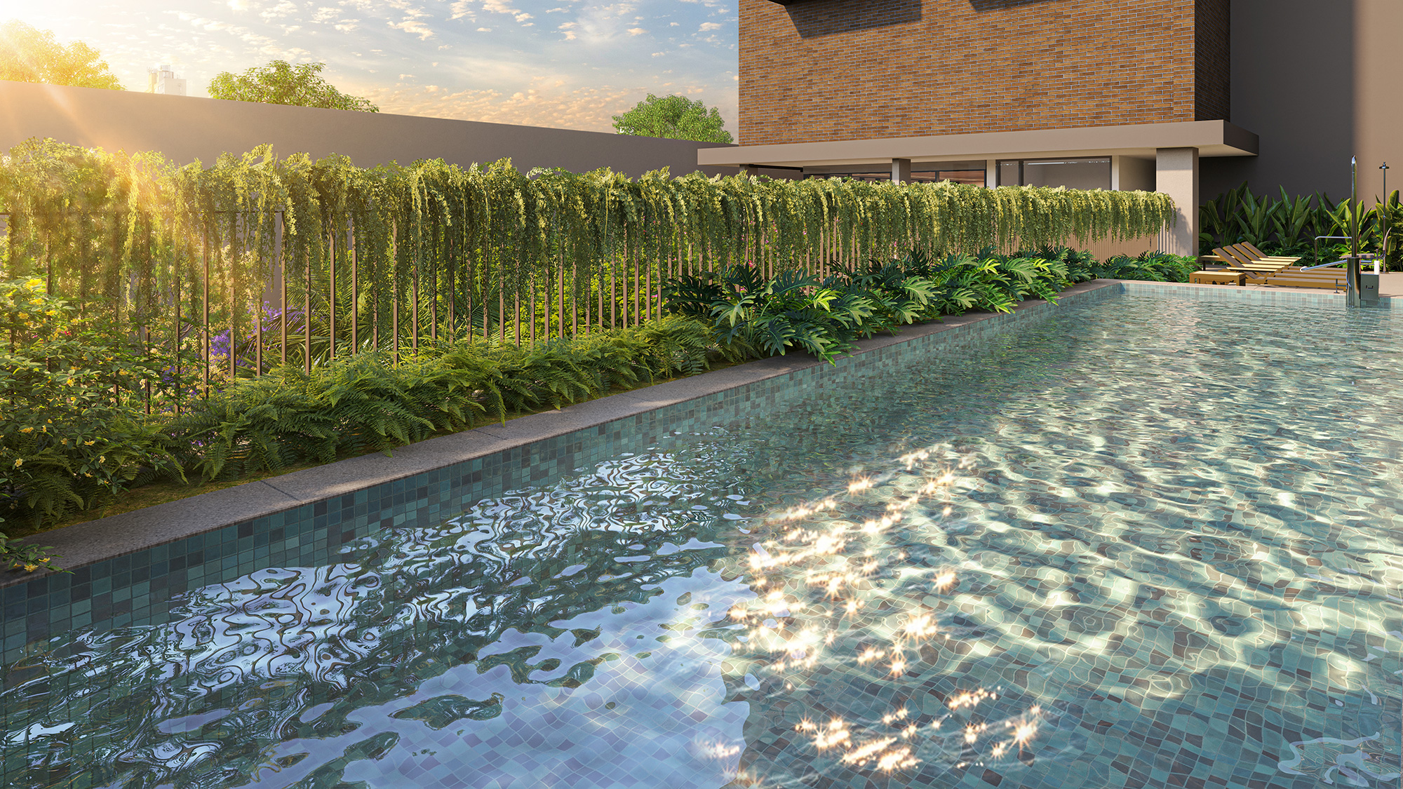 O verde rompe as fronteiras com a arquitetura e abraça cada detalhe do empreendimento.