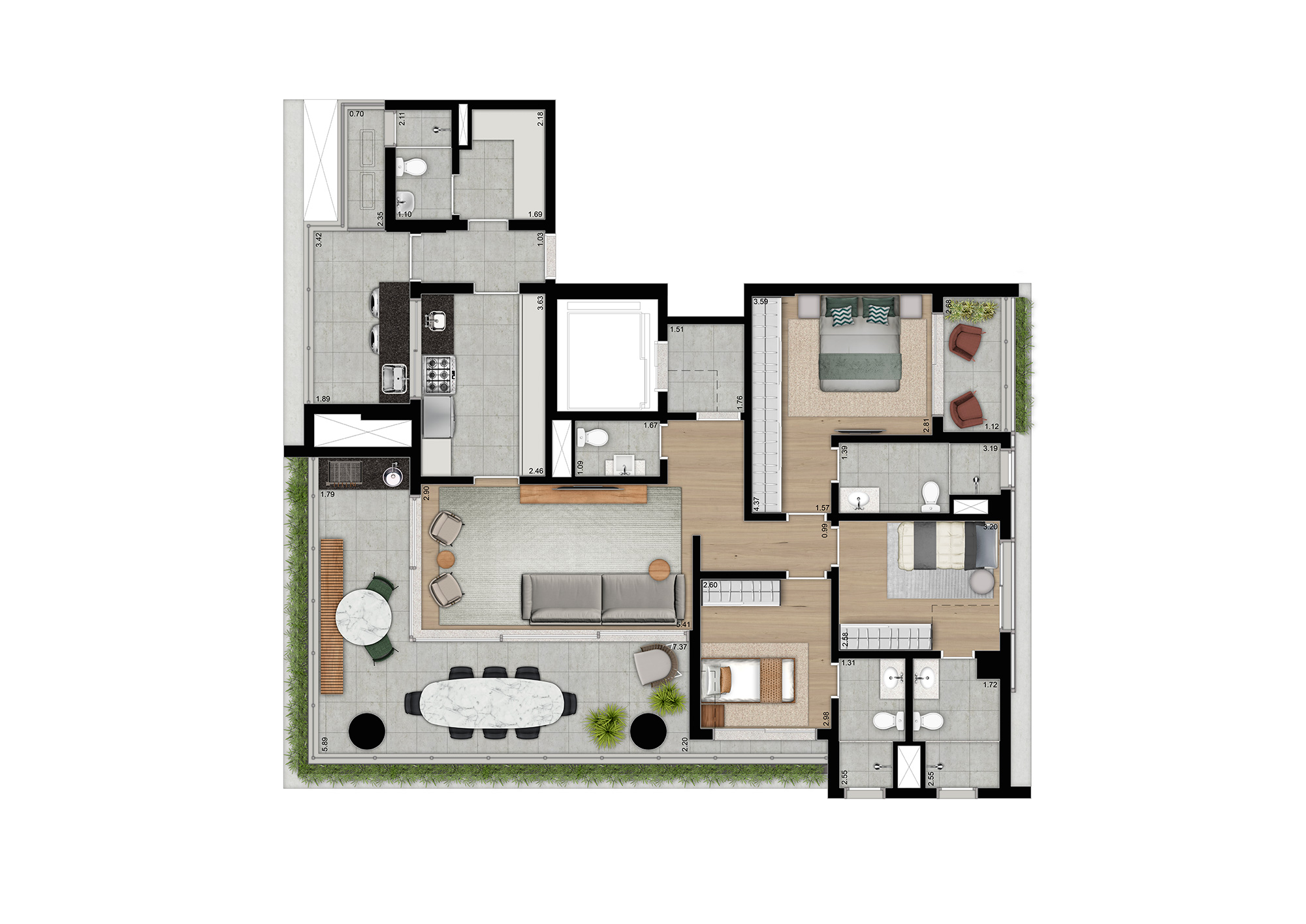 O Moma Moema possui três espaços dedicados ao lazer, as floreiras integradas as amplas varandas trazem o toque de elegância natural ao projeto.